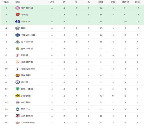 北京時間11月6日凌晨,歐冠聯賽階段第4輪第二個比賽日,總共9場,曼城主場4-1多特,巴薩客場3-3布魯日,國米主場2-1凱拉特,切爾西客場2-2卡拉巴赫,帕福斯主場1-0比利亞雷亞爾,本菲卡主場0-1勒沃庫森,馬賽主場0-1亞特蘭大,紐卡斯爾主場2-0畢爾巴鄂,阿賈克斯主場0-3加拉塔薩雷,接下來看看每場比賽的簡單綜述。